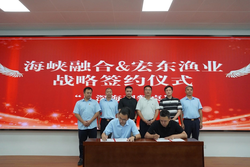 近日,海峽融合公司與宏東漁業(yè)共同簽署戰(zhàn)略合作協(xié)議。海峽融合公司、宏東漁業(yè)領(lǐng)導(dǎo)及省工控集團相關(guān)部門負責人出席簽約儀式。